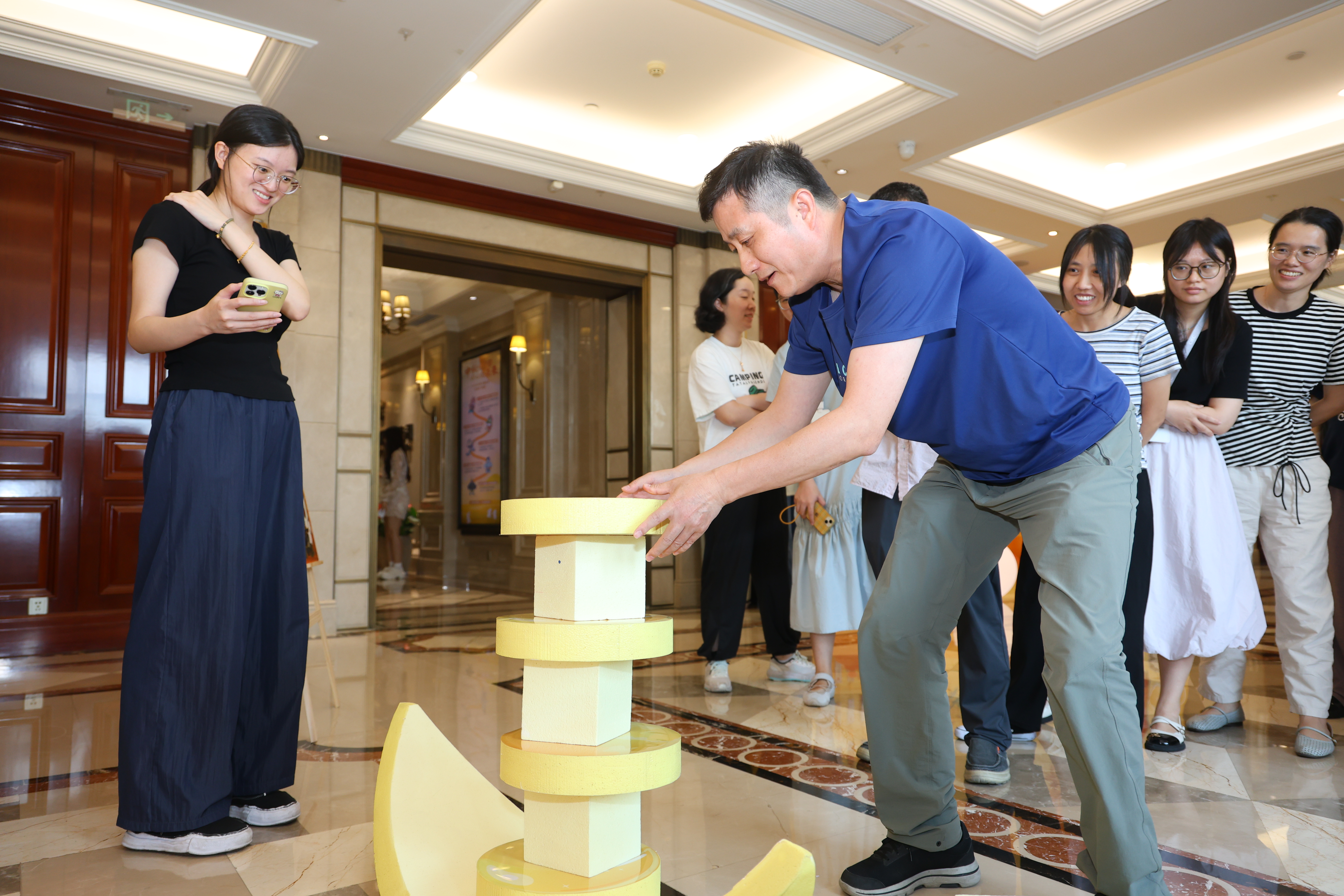 9月26日中午,“游園打卡”互動(dòng)體驗(yàn)將節(jié)日氛圍推向高潮?;顒?dòng)在漢嘉國(guó)際辦公區(qū)設(shè)置了中秋猜謎、疊疊樂(lè)、平衡取經(jīng)、蒙眼貼畫、投壺、體力大闖關(guān)等六個(gè)趣味游戲。員工們踴躍參與,在各個(gè)游戲中穿梭挑戰(zhàn),成功的歡呼與善意的調(diào)侃交織,匯成一片歡聲笑語(yǔ)的海洋。同時(shí),漢嘉國(guó)際、泛海國(guó)際、綠地商業(yè)中心等處精心準(zhǔn)備的各式茶點(diǎn),為活動(dòng)更添一份甜蜜。
